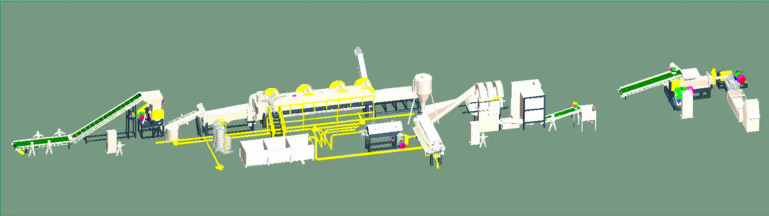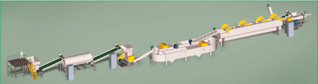 本設備生產出高質量的PET瓶片,可用于生產PET再生滌綸等長纖產品和其他高質量PET相關產品。該生產線外觀精美、能耗低、產量高,實用可靠。全新的漂洗裝置可以隨破隨洗,大大提高了生產效率,且洗料干凈,達到一級凈片要求。
