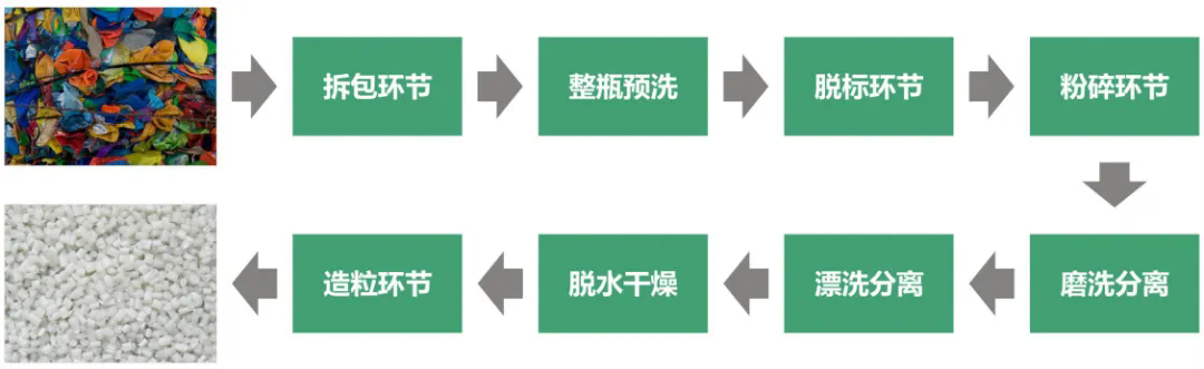 整套設備從拆包到破碎-清洗-除紙-除橡膠-干燥-分離瓶嘴料均可全自動化流水生產。生產出來的成品顆粒基本達到了新料的品質,廣泛用于注塑擠出、加工造粒等領域。